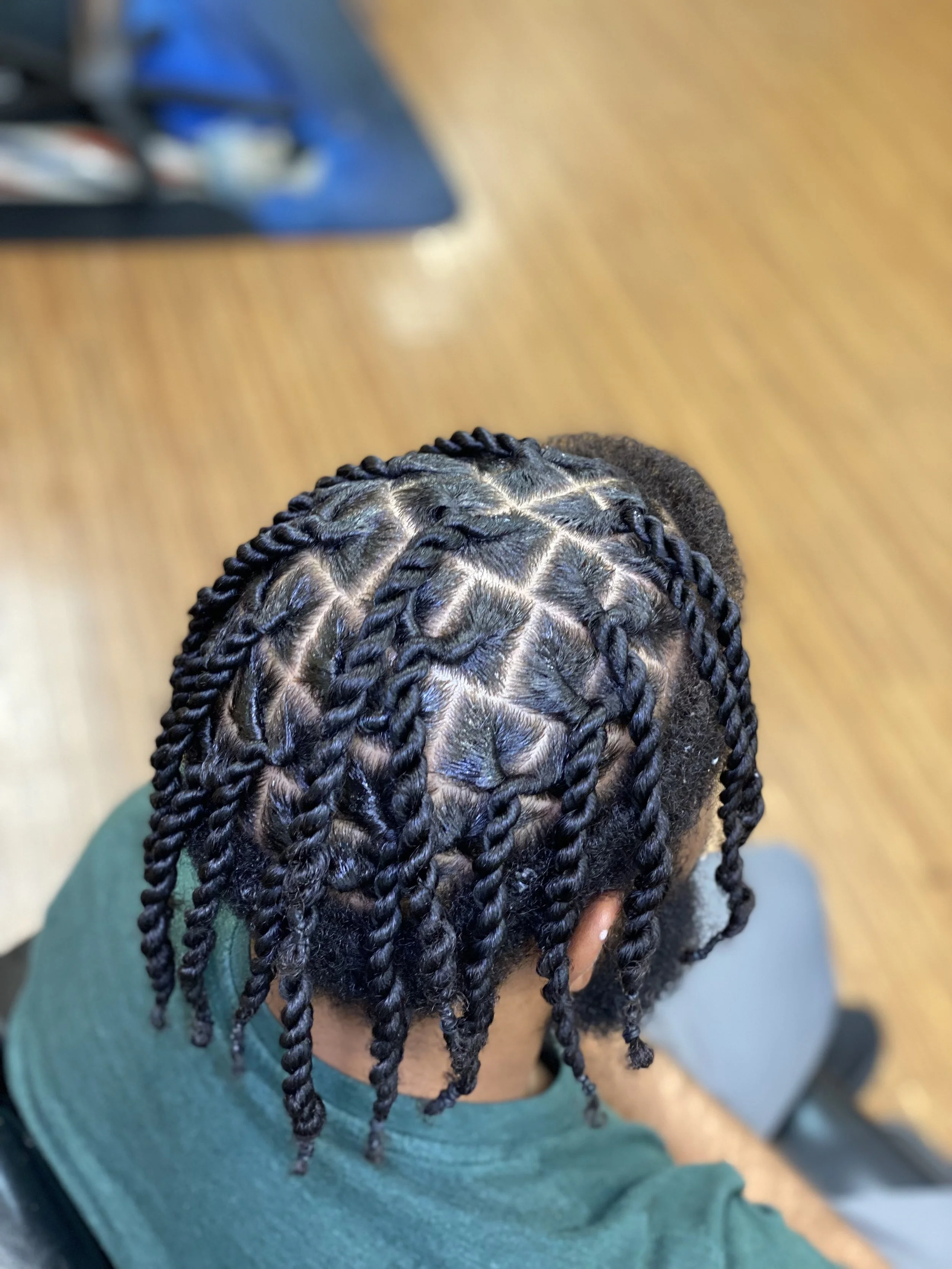 Re-twist service including a cleansing wash to refresh the scalp and restore neatness at the root.