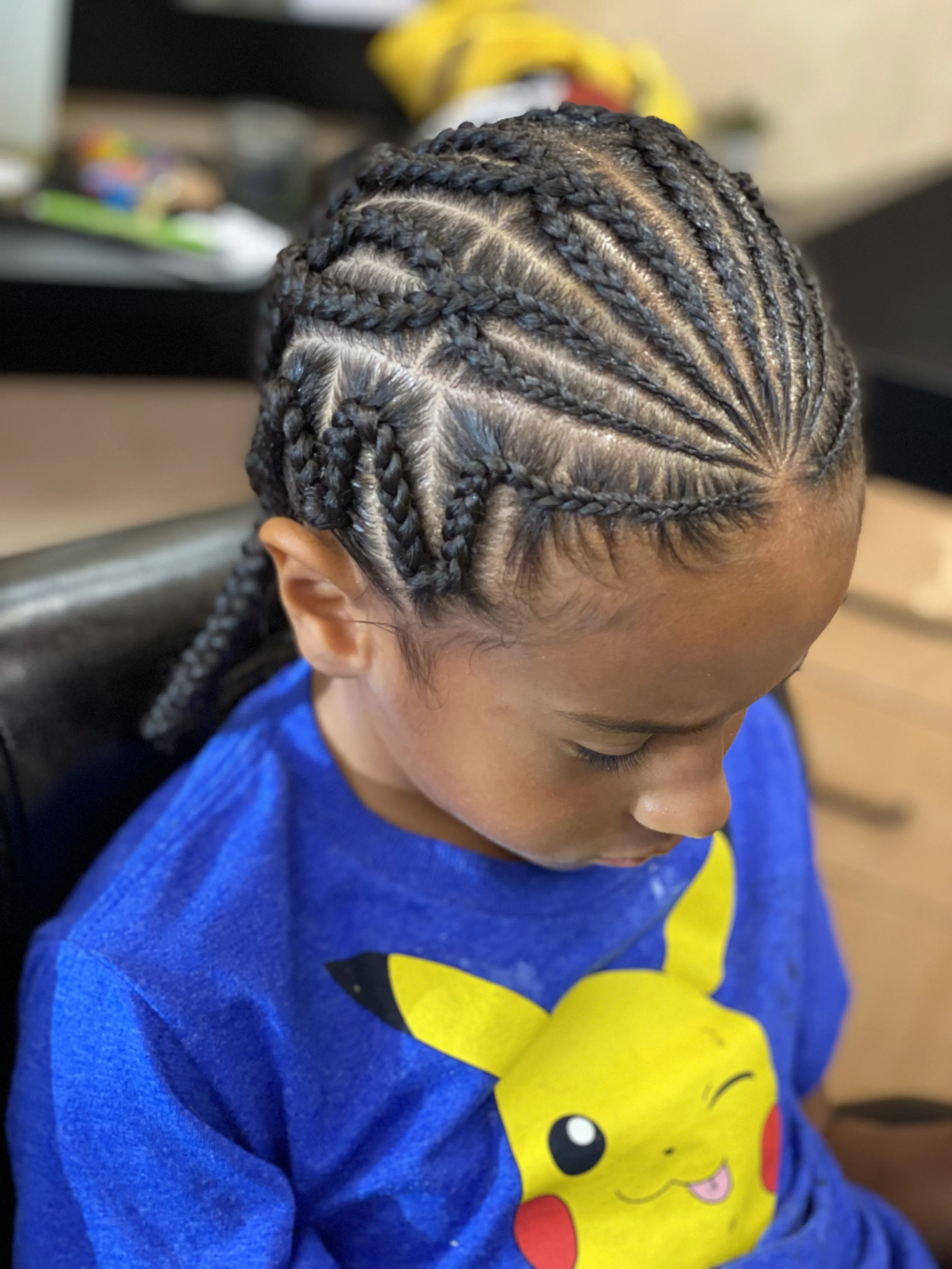 Kid-friendly natural braid styles for ages 4-12. Simple, clean, and age-appropriate styling.